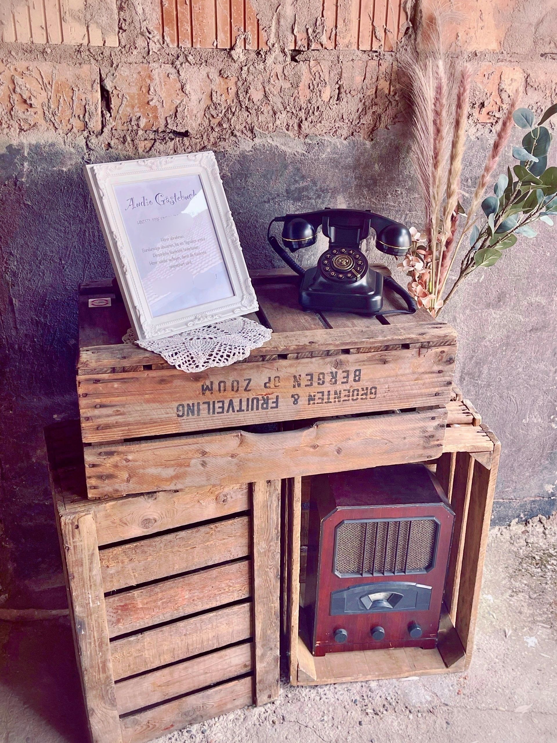 Verschiedene Deko wie z.B. weiße / braune Holzkisten